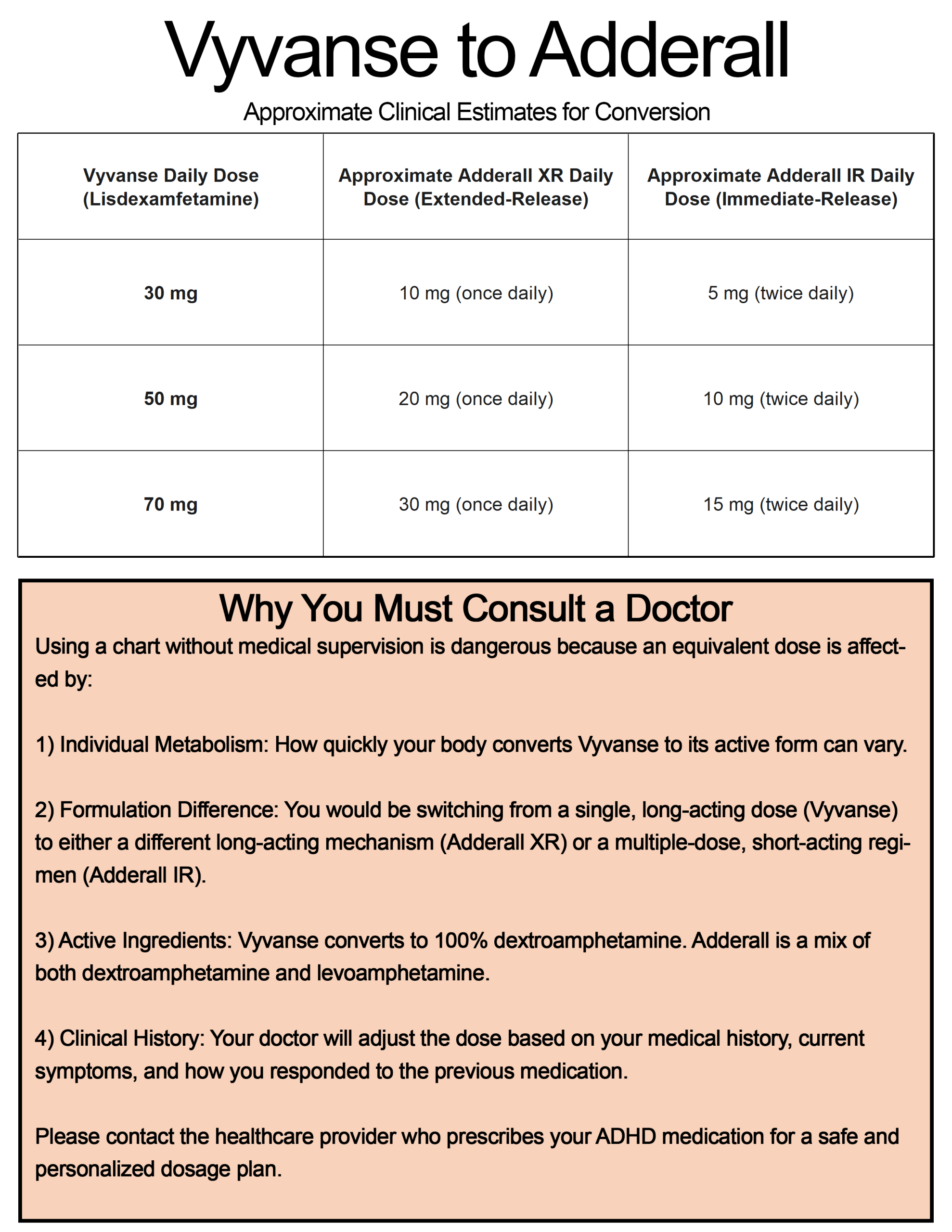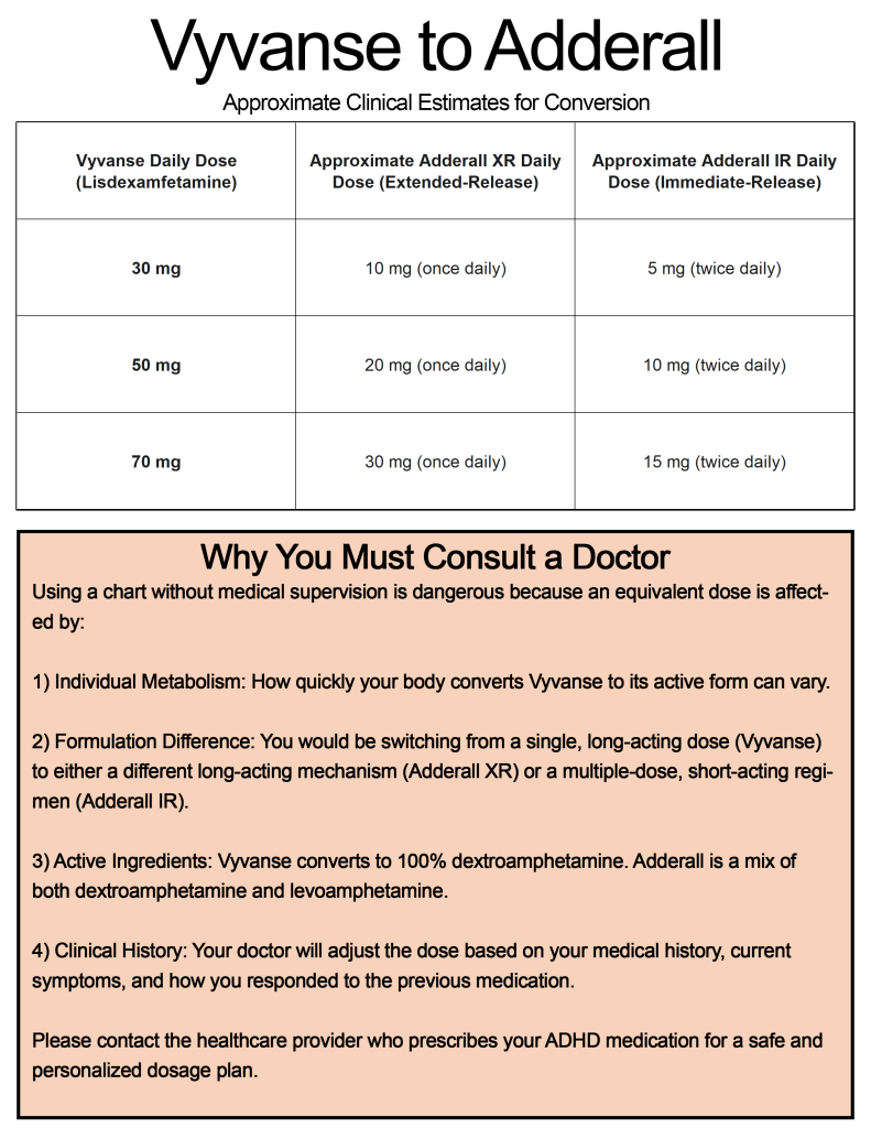 Vyvanse to Adderall conversion cheat sheet: PDF – PNG