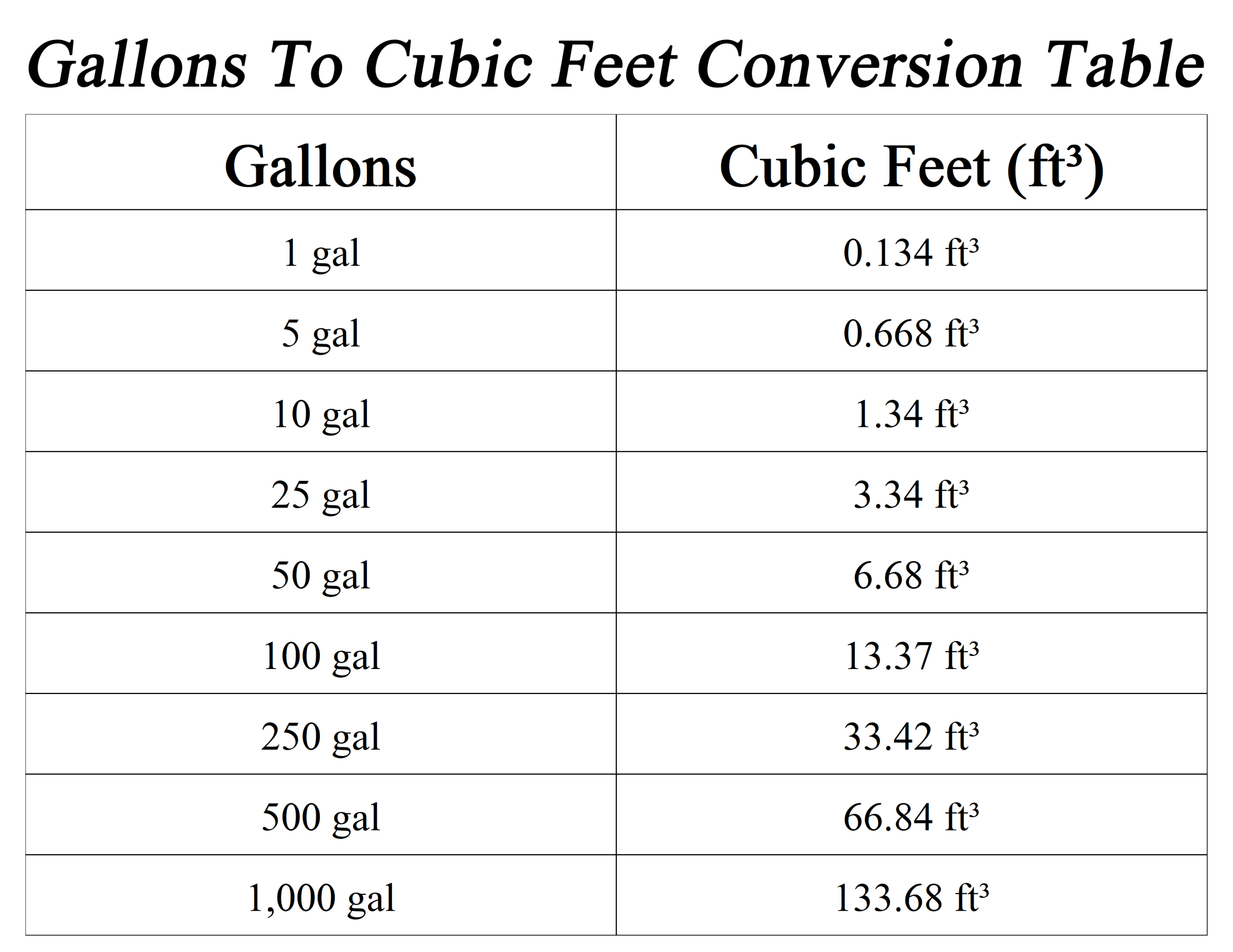 Using our gallons to cubic feet conversion chart is way easier than pulling out a calculator every time. The chart already does the conversion for you, so you just match gallons to cubic feet and move on.