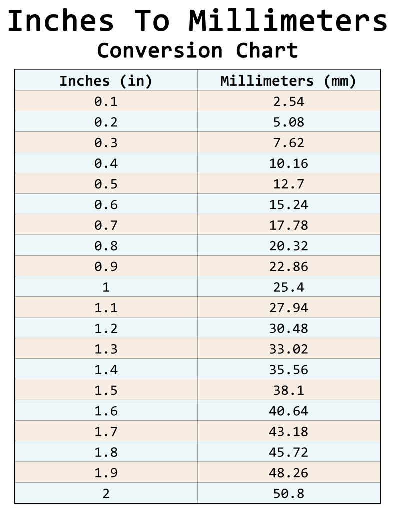 Printable inches to mm conversion table: PDF – PNG