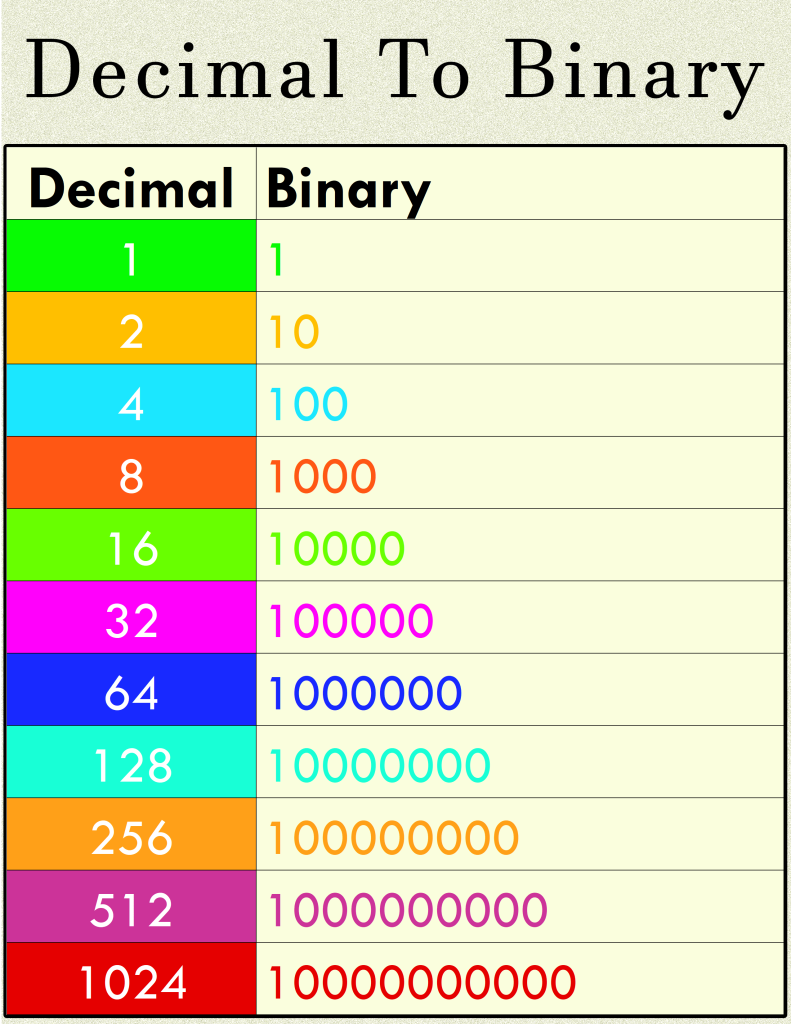 Download Our Printable Decimal to Binary Conversion Chart For Free