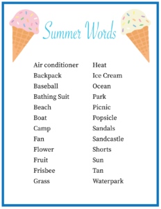 In this post, we have a list of summer-themed words to use for a road trip guessing game. In the usual ‘Twenty Questions’ game, the word is in one of three categories; animal, vegetable, or mineral. These words cover a wider variety of categories so they may be harder to guess, but you can change the rules so kids have infinite questions to ask! After all; your car, your rules!