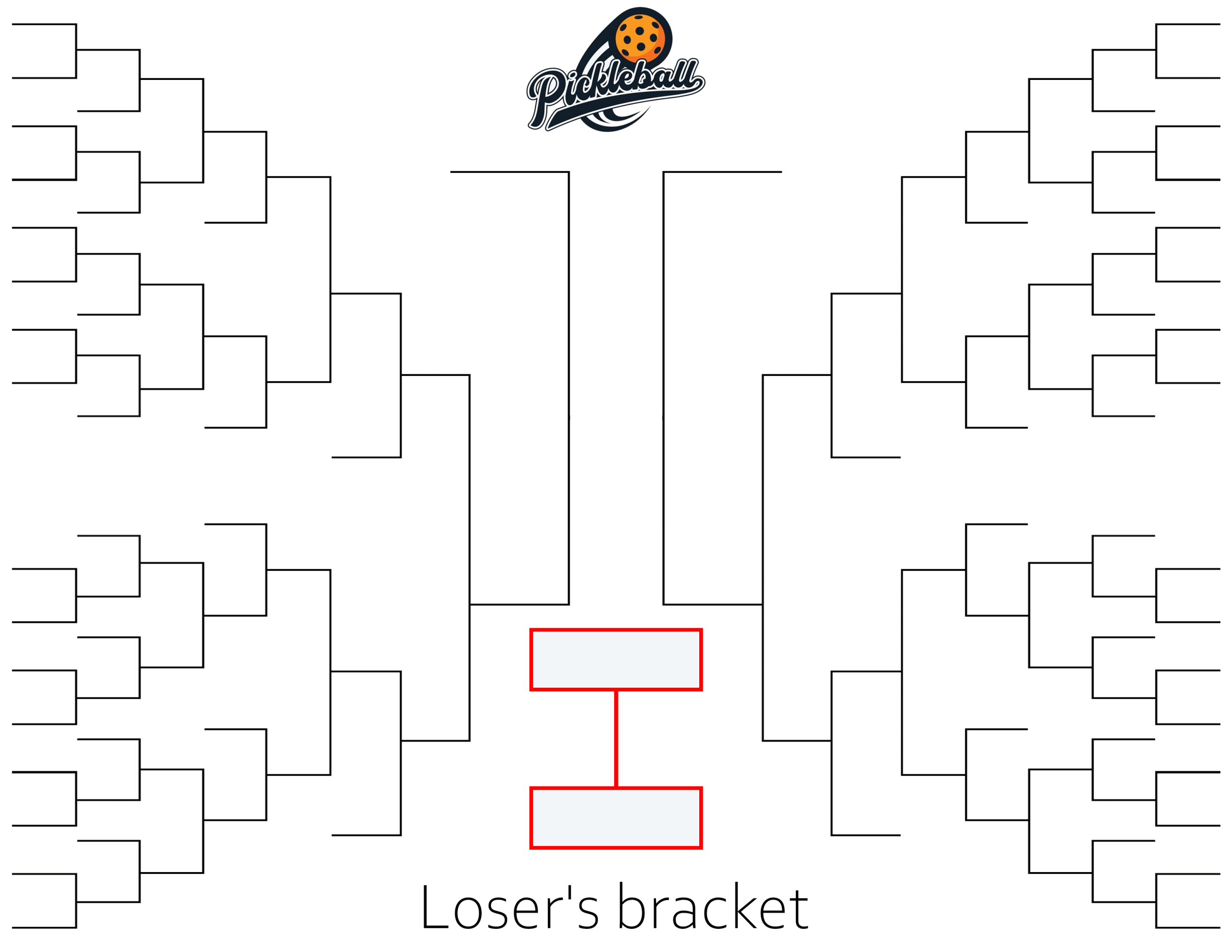 - Pickleball 64-player double elimination: Winner and Loser bracket.