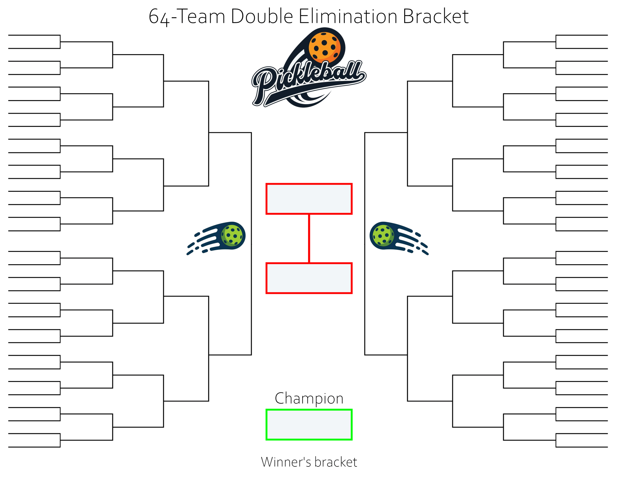 Free Pickleball Bracket: 64-Player Double Elimination Bracket for Larger Tournaments