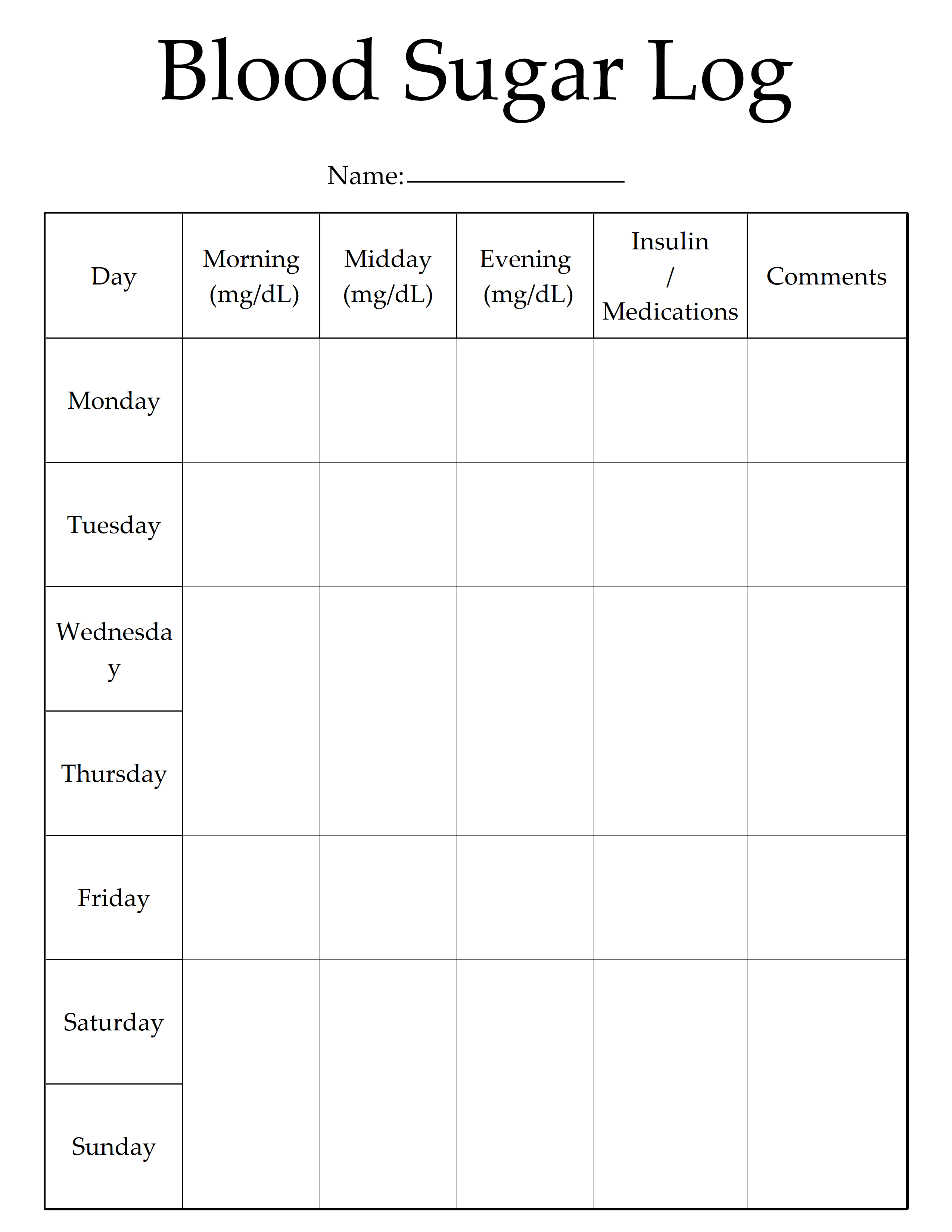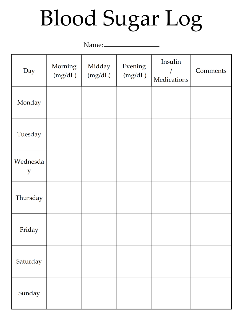 - Enhanced Communication with Healthcare Provider: A well-maintained log sheet provides valuable data for your healthcare provider. They can use this information to assess your blood sugar control and adjust your treatment plan as needed.